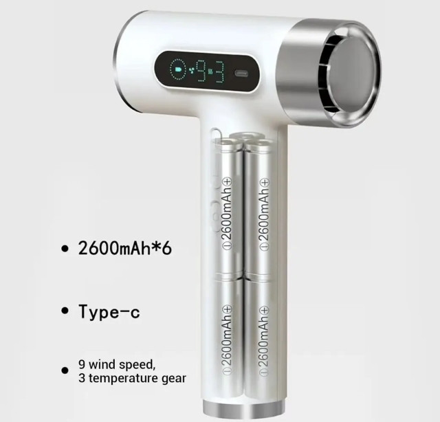 Це портативний бездротовий фен для сушіння волосся, що не потребує під’єднання до електричної мережі. Завдяки акумулятору — фен забезпечує безперебійну роботу без потреби під’єднання до розетки.